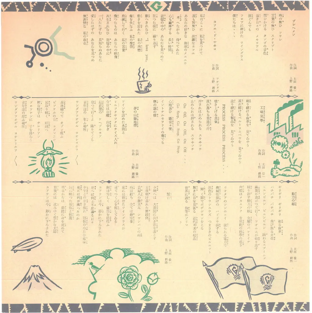 和上野耕路音樂上的邂逅, 始於81年New Wave 樂團Halmens 的一張《ハルメンズの20世紀》. 之後隨著Halmens 的解散, 上野耕路便連同畫家/ 美術設計, 身兼填詞一職的太田塋一組成Guernica這支極富革新性的樂團 – 一支一面在認真地去進行復古行動, 一面同時在發掘如何貫通懷舊歌謠與現代電子音樂的前進樂團.