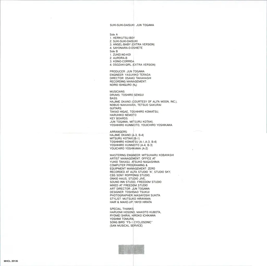 - KEYBOARDS:戸川純、小滝満、国本佳宏、吉川洋一郎